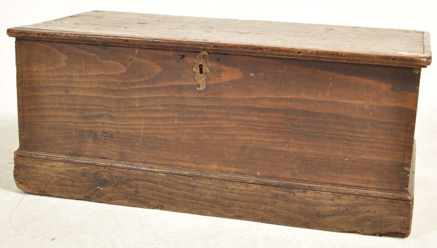 A 19th century late Victorian oak chest / coffer having a hinged lid opening to reveal a spacious interior raised on a plinth base.