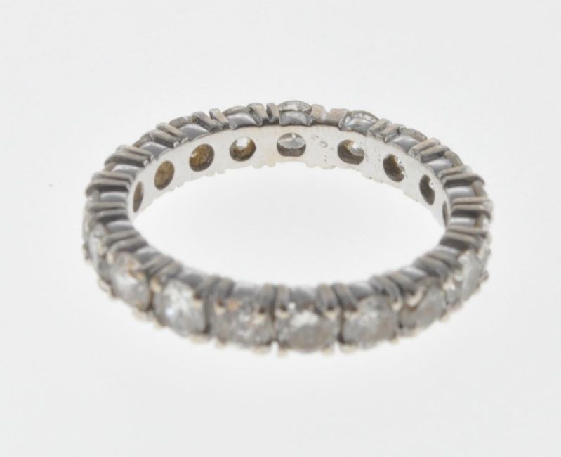 A 20th Century diamond eternity ring set with nineteen brilliant cut diamonds. Marked 585 to interior of the band. Weight 3.3g. Size N.5. Diamonds estimated at 1.9ct.