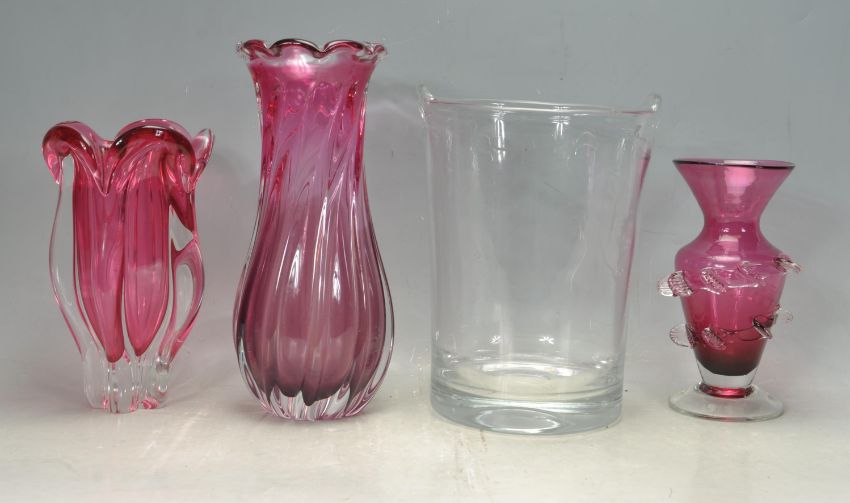 A collection of retro vintage studio art glass comprising of two retro vintage late 20th century Czech studio art glass vases by Josef Hospodka together with a large retro champagne pail and more. Tallest measures 30cm tall.