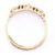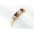 A hallmarked 18ct gold diamond and garnet five stone ring. The ring set with three old cut diamonds ( estimated  total 0.60ct ) and mixed cut garnets, to foliate stylised shoulders and plain tapering shank. Hallmarked Birmingham 1918. Weight approx 3.4g. Size O.