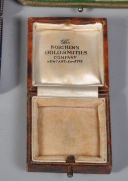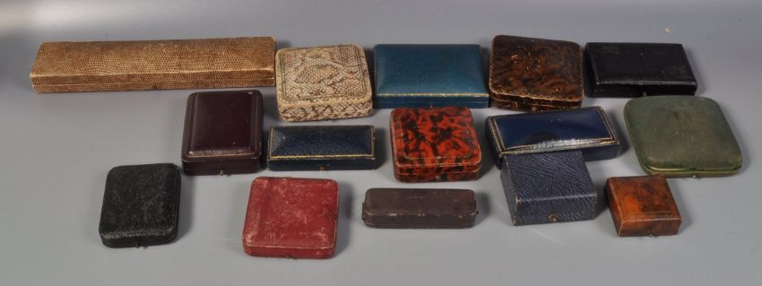 A group of 19th Century and later jewellery boxes to include a selection of shapes and sizes, most being tooled leather. Jewellers to include Vaughtons, James Walker, Spencer & Co, Ciro, S M McNicol, George Attenborough etc.