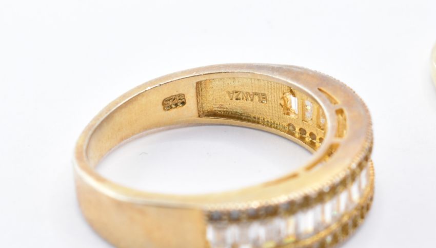 A group of ten silver stone set rings of various styles and designs to include a ring set with a large round white stone, a gold plated ring set with three oval cut red stones, a purple stone crossover ring etc. All marked 925 or silver. Total weight 36.9g.