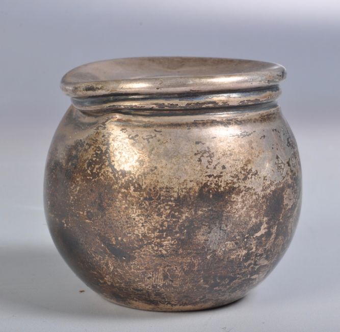 A 19th Century Victorian George Betjemann & Sons silver filled ball candlestick holder having a flared rim and bulbous orb shaped base. Hallmarked London 1899 with makers mark, marked 20 Old Bond Street to the base. Some dents / mis shaping, some tarnishing. Measures 5cm tall.