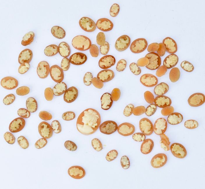 Loose Cameos - A collection of loose carved shell cameo ovals having carved maiden busts. Measures largest 13mm x 10mm, smallest 6mm x 4mm.