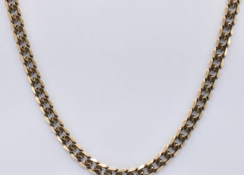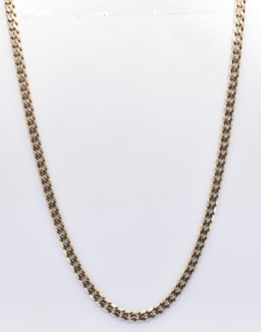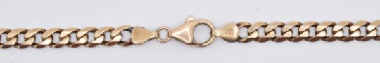 A 9ct gold flat curb link necklace chain with a lobster clasp. Marked 375. Weight 22.3.g. Measures length 20 inches, width 5mm.