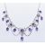 An early 20th Century Liberty & Co Art Nouveau white gold and amethyst set necklace having a fine link chain with sixteen round and oval cut amethysts, the round amethysts being set within foliate open work mounts with chains suspended below, set within a fitted Liberty tooled leather box. Marked 18 with a crown to the spring ring clasp. Chain measures approx 16 inches, longest drop measures 3.3 cm. Weight 13.4g.