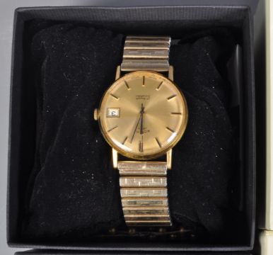 A group of five gentleman's wrist watches to include a Seiko two tone bracelet watch, a Spitfire 75th anniversary mechanical watch with a rose gold plane motif to the centre, a Kenneth Vole exposed mechanism watch, a Constantine Weisz chronograph watch and a Rotary 17 jewels incabloc watch. Some in boxes.