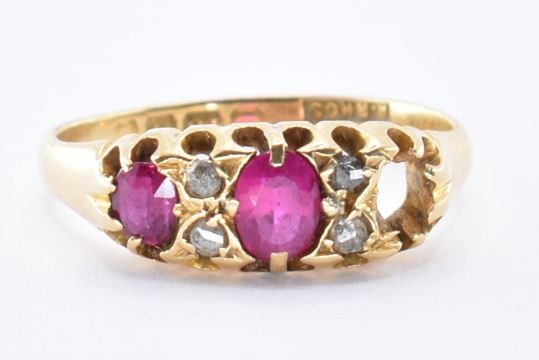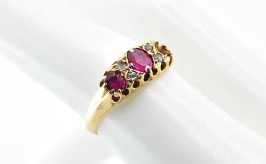 Two gold rings. A hallmarked 18ct gold ruby and diamond ring 3.9g, size O (AF) together with a hallmarked 9ct gold ring 2.4g (AF)