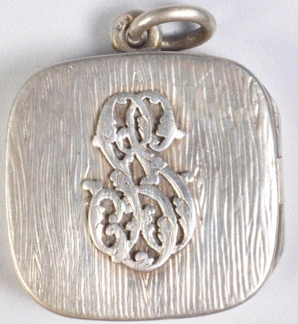 A late 19th Century Austro Hungarian silver locket of square form having a textures body with applied SS initials to the front, with pendant bale to the top. 800 silver marks to both pieces. Weight 11g. measures 3.5cm