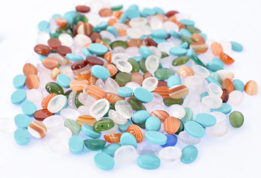 LOOSE GEMSTONES - A  quantity of  gemstone round & oval  cabochons and plaques to include, carnelian, rose quartz, dyed agate, turquoise . Sizes range 6mm - 28mm. Weight approx 67g