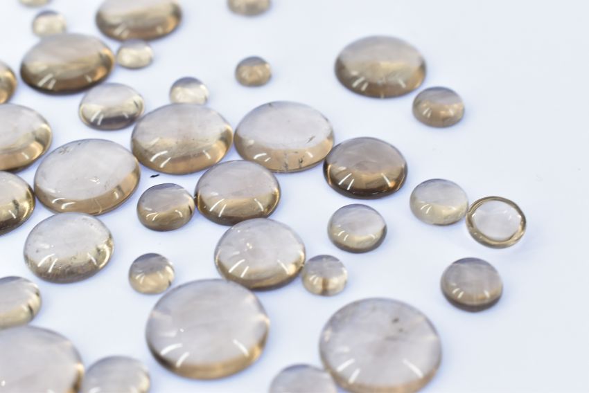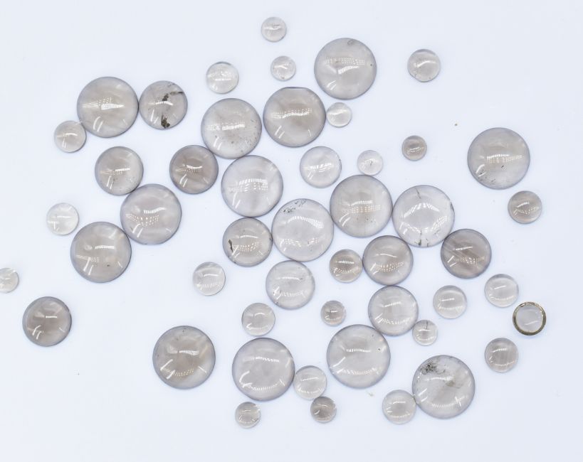 A large collection of loose smoky quartz cabochons including 6mm, 8mm,12mm, 15mm rounds. Total weight approx 40g - 200ct