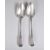 A pair of hallmarked 19th Century George III serving spoons with pointed bowls. Hallmarked London 1810. Makers marked rubbed. Weight 126g. Measures 22cm.