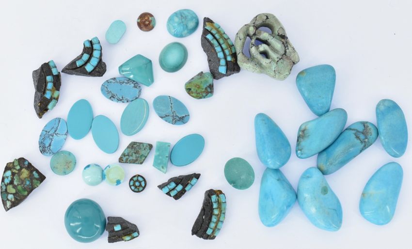 A quantity of mixed turquoise to include fashioned and tumble stones. Longest 2.3cm. Weight approx 46g
