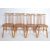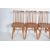 A set of four retro vintage beech and elm dining chairs having a comb back rest over a saddle seat raised on turned legs united by stretchers. Measures 84cm h x 43cm w x 41cm d