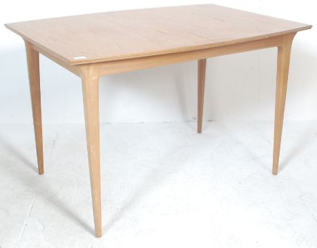 AH McIntosh & Co of Kirkaldy - A retro vintage 20th Century British Design teak wood dining table having a two piece rectangular top with spare leaf to the underside raised on tapered supports. 79cm h x 115cm w x 82cm d