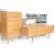 A retro vintage late 20th century teak melamine bedroom suite comprising of tallboy chest of drawers raised on tapering supports together with a matching dressing table 122cm h x 70cm w x 44cm d