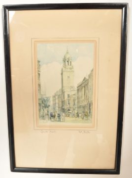 Pair of coloured engravings of Bristol to include Wills memorial building and Corn Street. Both signed in pencil to the margins. Measures, 48 cm H x 33 cm W