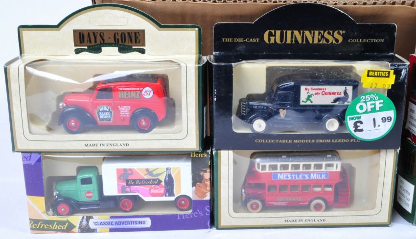 A large collection (likely 100+) mostly Lledo made Days Gone and Promotional diecast models. Largely advertising interest, various vehicles. All generally appearing mint / near mint, but unboxed.