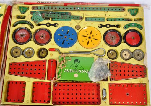 Three vintage Meccano made boxed constructor sets - all Outfit No 4 's in coloured boxes. The vendor assures us teh sets are complete however they remain unchecked by us. Great sets.