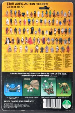 Star Wars - An original vintage 1983 Palitoy made Star Wars carded MOC action figure ' Luke Skywalker - Jedi Knight Outfit '. Factory sealed upon it's original 77 back Return Of The Jedi card. The bubble fully factory sealed, but with no splits or dents. Card back VG+ to EX, no veining. Green lightsaber.