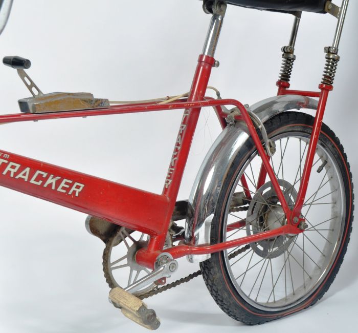 Diana, Princess Of Wales - Princess Diana's own vintage 1970s Trusty Manufacturing Co. made Tracker red and chrome 'Chopper' style bicycle, No. 153079. All original bike, with sprung rear suspension, chrome mud guard, vinyl saddle, central gear lever and y-frame handle bars with cable brakes. Retains the original tyres. Complete, and generally in very good original condition. The bike was ridden by Diana in the 1970s at the Spencer family estate - Althorp, Northamptonshire.