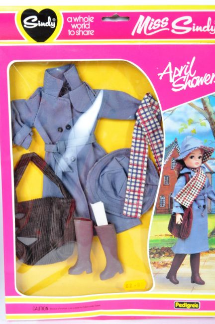 Sindy - a collection of vintage Pedigree made Sindy dolls and accessories. All appearing unused, and generally as new. Includes Outdoor Girl (still wired to the inner card), Sunshine Sindy (mint), and x2 unused outfit sets - 44121 Boutique (Horse Riding Outfit) and April Showers. All unused.