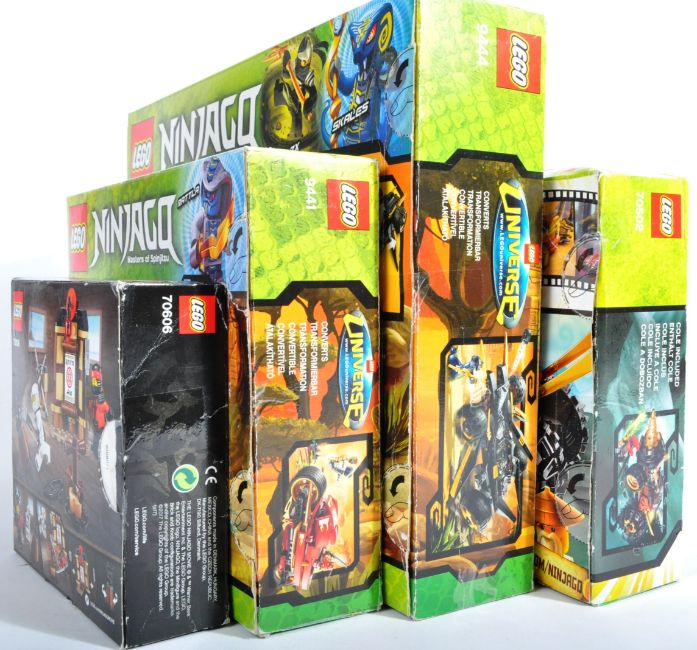 Lego sets - Lego Ninjago Masters Of Spinjitzu - a collection of x4 original boxed Lego Ninjago Masters Of Spinjitzu sets comprising 9441 Kai's Blade Cycle, 70606 Ninjago Movie Spinjitzu Training, 70502 Cole Earth Driller and 9444 Coles Tread Assault. All sets appearing to be resealed but the vendor assures us all sets are 100% complete with instructions present. From a large private collection of Lego - the vendor assures us sets are 100% complete (where stated) but contents have not been checked by us. In the majority of cases boxes have been resealed to secure the contents (unless stated as 'factory sealed' in which case the set is unopened). East Bristol Auctions cannot guarantee completeness.