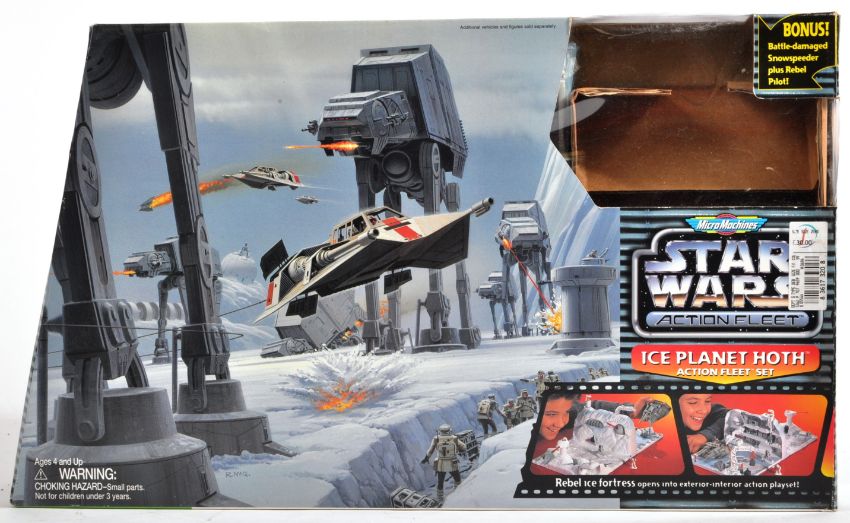 Star Wars - a collection of x6 vintage 1990s Hasbro / Kenner made Star Wars action figure playsets and toys. All appear to be complete (but are unchecked) and within their original boxes. Most still retaining the inner packing. Includes; x2 A-Wing Fighter sets, a Galoob MicroMachines Ice Planet Hoth set, Millennium Falcon Carry Case, Ronto & Jawa etc. All boxed.