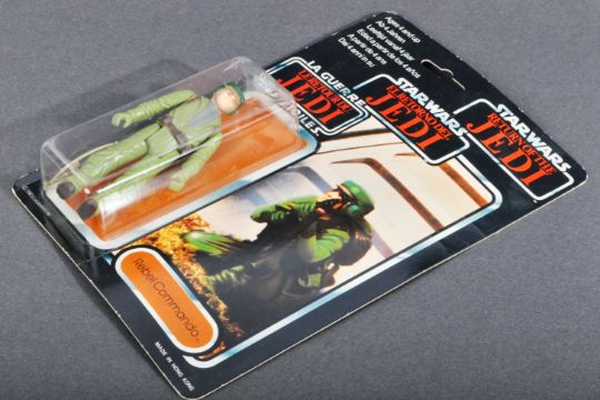 Star Wars - An original vintage 1983 Palitoy made Star Wars carded MOC action figure ' Rebel Commando '. Factory sealed upon it's original 79 back Return Of The Jedi trilogo card. The bubble fully factory sealed, but with some denting to the top. Card back VG+ to Near Mint - some waving.