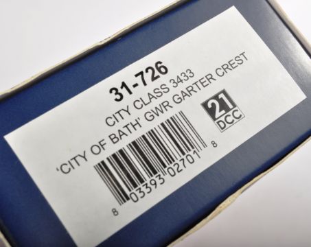 An original boxed Bachmann made Branch Line 00 gauge model railway trainset locomotive engine No. 31-726 City Class 3433 ' City Of Bath '. Great Western Railways Garter Crest. Highly detailed loco appearing mint within original box.