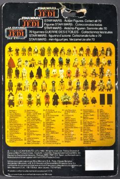 Star Wars - An original vintage 1983 Palitoy made Star Wars carded MOC action figure ' FX-7 '. Factory sealed upon it's original 79 back Return Of The Jedi trilogo card. The bubble fully factory sealed, but with some denting. Card back fair to good, with an old repair to the hanger.