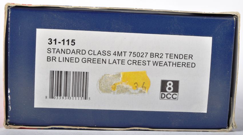 An original boxed Bachmann made Branch Line 00 gauge model railway trainset locomotive engine No. 31-115 Standard Class 4MT 75027 British Railways lined green late crest. Weathered. Highly detailed loco appearing mint, within original box.