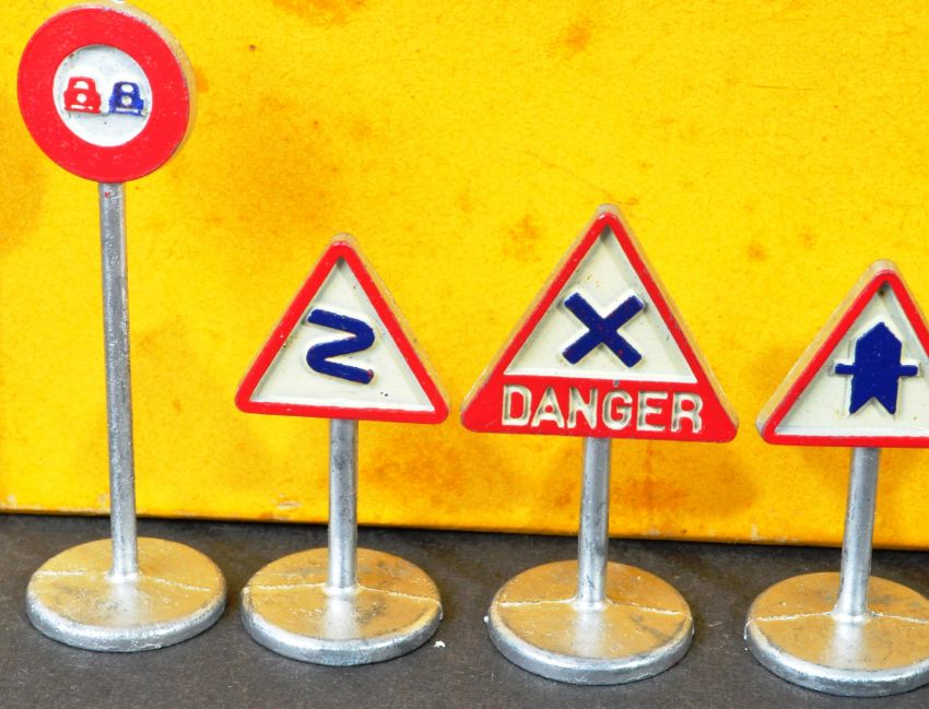 Dinky Toys - an original vintage Dinky Toys made boxed diecast model No. 41 ' Panneaux de Signalisation ' (Road Signs). Complete with all six signs, all generally in excellent to near mint condition. Housed within its original box (box VG to EX).