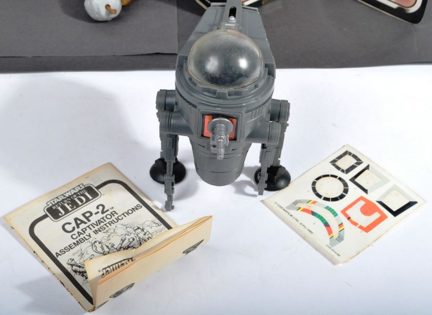 Star Wars - a collection of original vintage Kenner / Palitoy made Star Wars 'minirig' action figure playsets. Comprising: two boxed sets - One Man Sail Skiff (Palitoy trilogo ROTJ box - 100% complete with instructions), CAP-2 (Palitoy Return Of The Jedi box -100% complete with instructions), as well as several unboxed minirigs - INT-4, MLC-3, MTV-7, Ewok Catapult and others etc. (8)