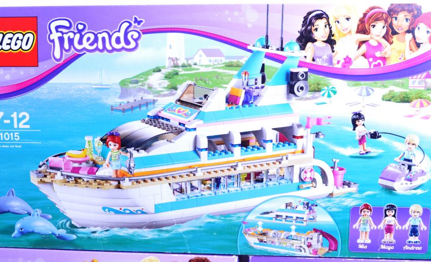 Lego Sets - Lego Friends - a collection of x3 original Lego Friends boxed sets comprising 41015 Dolphin Cruiser, 41058 Heartlake Shopping Mall and 41101 Heartlake Grand Hotel. The now retired sets appearing to be resealed to one side but the vendor assures us the sets are 100% complete with instructions present.From a large private collection of Lego - the vendor assures us sets are 100% complete (where stated) but contents have not been checked by us. In the majority of cases boxes have been resealed to secure the contents (unless stated as 'factory sealed' in which case the set is unopened). East Bristol Auctions cannot guarantee completeness.