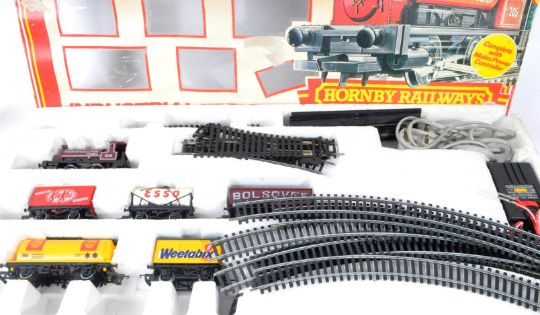 An original vintage Hornby made 00 gauge model railway trainset locomotive set No. R583 ' Industrial Freight ' along with R179 Grand Suspension Bridge, R752 ' Stewart & Lloyds ' 0-4-0 loco, R351 Thomas The Tank Engine and x3 rolling stock wagons. Good assortment.