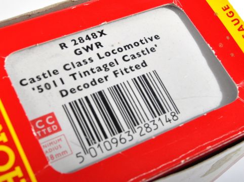 An original boxed Hornby made 00 gauge model railway trainset locomotive engine No. 2848X Great Western Railways Castle Class 5011 ' Tintagel Castle '. DCC fitted. Highly detailed model appearing mint, within original box.