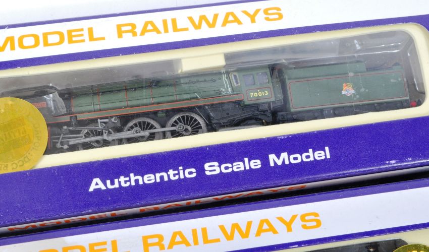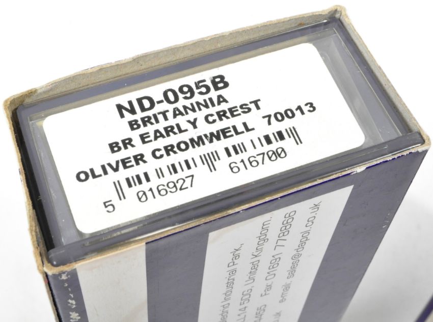 Two original boxed Dapol made N gauge model railway trainset locomotive engines comprising; ND-095B Britannia Class 70013 ' Oliver Cromwell ' and ND-135A GWR ' Norton Hall '. Two highly detailed models appearing mint, within original boxes.
