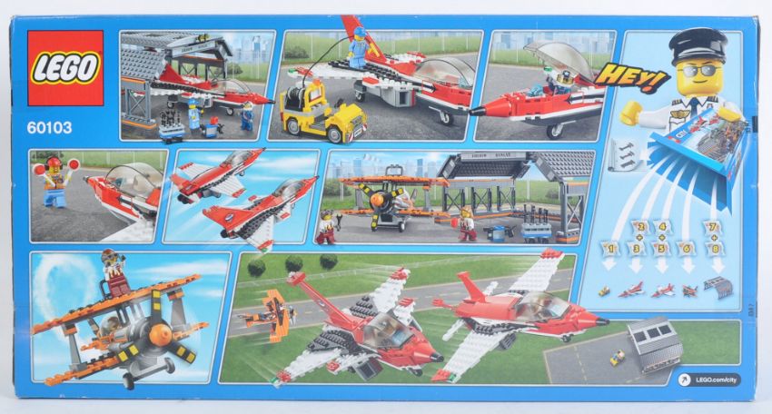 Lego Set - Lego City - 60103 - Airport Air Show - an original boxed Lego City set No. 60103 Airport Air Show. The now retired set appearing to be resealed to one side but the vendor assures us the set is 100% complete with instructions present.From a large private collection of Lego - the vendor assures us sets are 100% complete (where stated) but contents have not been checked by us. In the majority of cases boxes have been resealed to secure the contents (unless stated as 'factory sealed' in which case the set is unopened). East Bristol Auctions cannot guarantee completeness.
