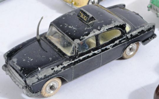 A collection of x10 original vintage Dinky Toys diecast model cars to include; 185 Alfa Romeo Coupe, 172 Studebaker, 150 Rolls Royce Silver Wraith, 168 Singer Gazelle, 176 Austin A105 and others. Models ranging from fair to good.