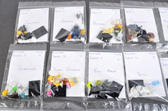 Lego Minifigures - a collection of x28 ' Series 11 ' Minifigures to include; Barbarian, Scarecrow, Holiday Elf, Grandma, Diner Waitress, Welder, Yeti, Mountain Climber and others. All minifigures 100% complete with accessory items. Unbagged.From a large private collection of Lego - the vendor assures us sets are 100% complete (where stated) but contents have not been checked by us. In the majority of cases boxes have been resealed to secure the contents (unless stated as 'factory sealed' in which case the set is unopened). East Bristol Auctions cannot guarantee completeness.