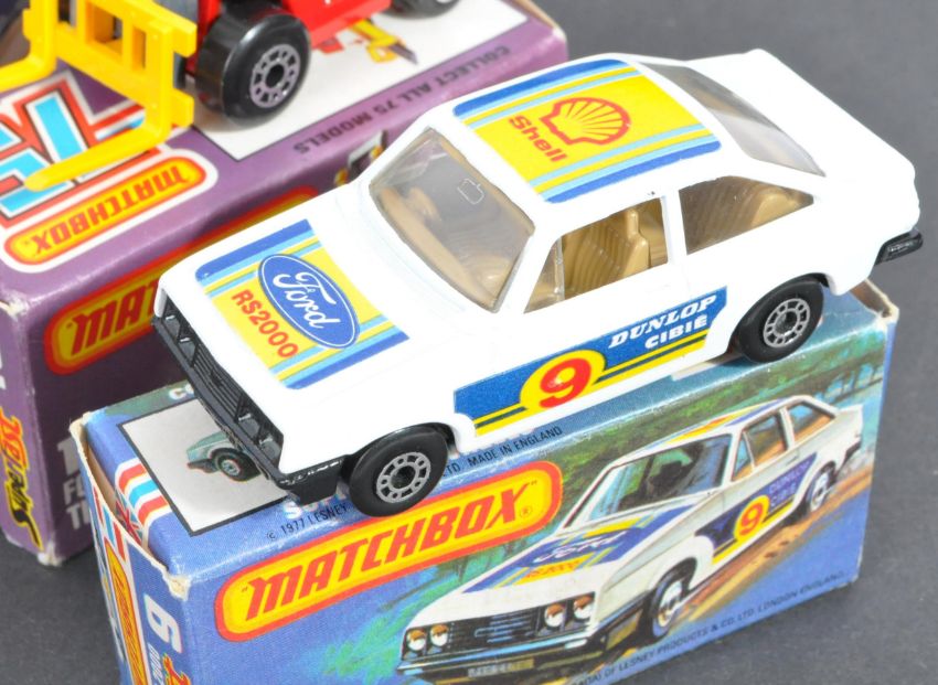 A collection of 10x original vintage Matchbox 1-75 Series boxed diecast models, to include; 61 Wreck Truck, 42 Mercedes Container Truck, 6 Mercedes Tourer, 12 Citroen CX, 3 Porsche Turbo, 33 Police Motorcyclist, 15 Fork Lift Truck, 9 Ford RS 2000, 75 Helicopter and 37 Matra Rancho. All models appearing near mint to mint, and all boxes generally good to very good.