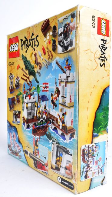 Lego Set - Lego Pirates - 6242 - Soldiers Fort - an original boxed Lego Pirates set No. 6242 Soldiers Fort. The now retired set appearing to be resealed to one side but the vendor assures us the set in 100% complete with instructions present.From a large private collection of Lego - the vendor assures us sets are 100% complete (where stated) but contents have not been checked by us. In the majority of cases boxes have been resealed to secure the contents (unless stated as 'factory sealed' in which case the set is unopened). East Bristol Auctions cannot guarantee completeness.