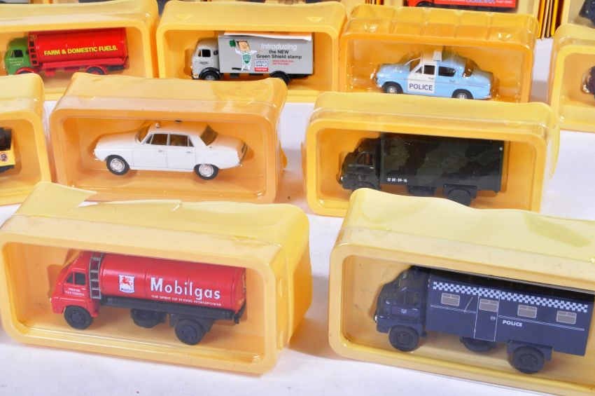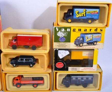 Large collection of approximately x24 Lledo made Vanguards diecast model cars and other vehicles to include; VA8008 Bedford S Type Van Army, VA8006 Bedford Van Post Office Stores, VA004 Bedford Van Sainsburys, HII002 Historic Rally Set, WV2002 Whitbread Commercial Vehicles and others. Some lacking outer boxes.