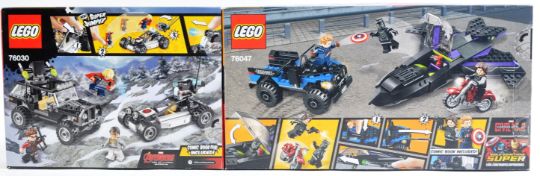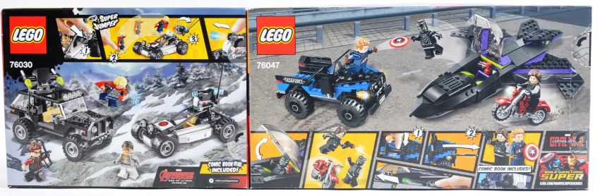 Lego Sets - Lego Marvel Superheroes - 76030 / 76047 - two original boxed Lego Marvel Superheroes sets comprising 76030 Avengers Hydra Showdown and 76047 Black Panther Pursuit. The now retired sets appearing to be resealed but the vendor assures us the sets are 100% complete with instructions present.From a large private collection of Lego - the vendor assures us sets are 100% complete (where stated) but contents have not been checked by us. In the majority of cases boxes have been resealed to secure the contents (unless stated as 'factory sealed' in which case the set is unopened). East Bristol Auctions cannot guarantee completeness.