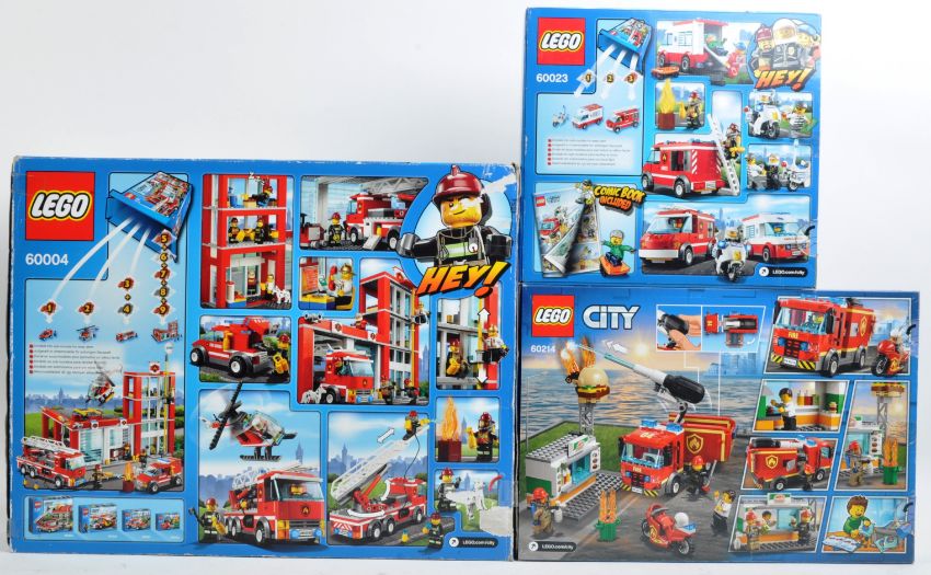 Lego Sets - Lego City - 60004 / 60214 / 60023 - a collection of x3 original Lego City sets comprising 60004 Fire Station, 60214 Burger Bar Fire Rescue and 60023 City Starter Set. All sets appearing to be resealed to one side but the vendor assures us the sets are all 100% complete with instructions present.From a large private collection of Lego - the vendor assures us sets are 100% complete (where stated) but contents have not been checked by us. In the majority of cases boxes have been resealed to secure the contents (unless stated as 'factory sealed' in which case the set is unopened). East Bristol Auctions cannot guarantee completeness.