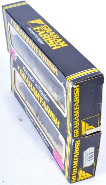 Two original boxed Graham Farish N gauge model railway trainset locomotive engines comprising models No. 1845 Class 4F British Railways 0-6-0 loco and No, 1851 LMS 2-6-0 crab tender loco. Two highly detailed locos within original boxes.