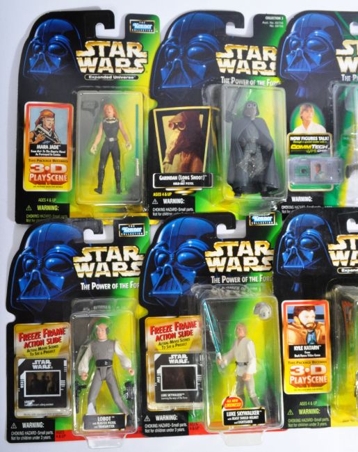 Star Wars - a collection of x12 Kenner / Hasbro made Star Wars MOC carded action figures from various series - Expanded Universe, Episode I, Power Of The Force etc. All as new and factory sealed, to include; Han Solo, Lobot, Luke Skywalker, Weequay, R2-D2, Luke Skywalker X-Wing Pilot and others.