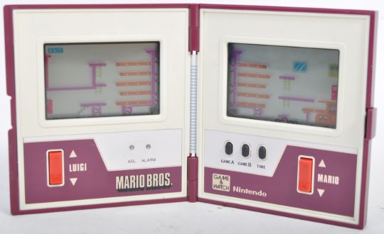 Game & Watch - an original vintage 1980s (1983) Nintendo made Mario Bros Game and Watch handheld games console. Complete with battery compartment cover. Untested by us, but vendor assures us in working condition.