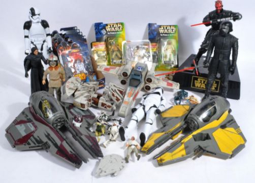 Star Wars - a large collection of assorted Star Wars action figures and playset items to include; Hasbro Saga Legends (Yoda, Obi Wan, Super Battle Droid, Mace Windu and R4-P17), Kenner Power of The Force (Lando and Admiral Ackbar), Hasbro Anakins Jedi Star Fighter and Obi Wans Starfighter, Tonka X-Wing Fighter and a selection of assorted action figures.